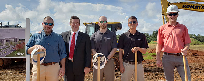 DISC groundbreaking event. From left to right: Andy Bobe, Dewberry; Steve Carey, Chairman of the Industrial Development Board; Logan Dunn, Dewberry; Caleb Hearn, Dewberry; Daniel Calametti, Dewberry