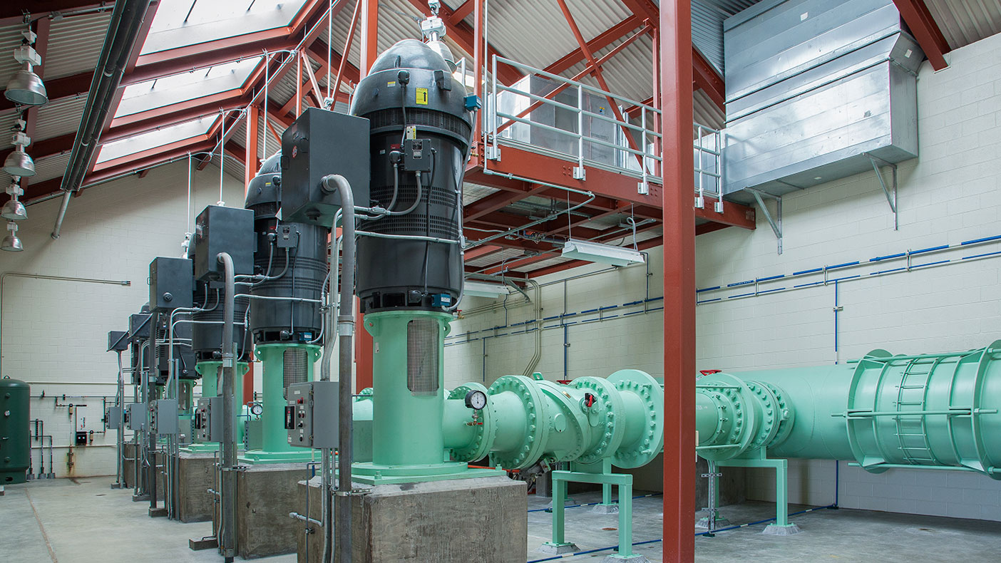 Our structural design included a concrete sedimentation channel, influent channel, wet well, and pump house. We designed approximately 15,800 feet of 48-inch welded-steel pipe, which required steady state and transient hydraulic modeling, appurtenance design, thrust restraint design, and tie-ins to existing pipelines.